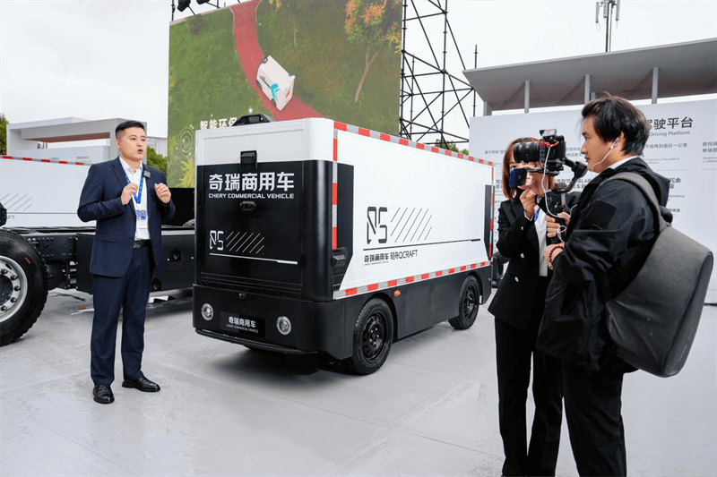 此次展出的“无人驾驶物流车”“奇瑞商用车车联网服务平台”等技术成果,既是商用车自身技术突破的见证,更是集团构建“瑶光战略”的关键落子:奇瑞商用车车联网服务平台能通过“32个细分场景数据建模”,精准破解货运“空驶率高、调度难”的行业痛点,无人驾驶物流车则直击“末端物流人工成本高、效率低”的核心问题,前者优化全局运力调度,后者打通末端物流无人化链路。